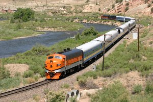 ![]() The Canon City & Royal Gorge operates the most scenic parts of the former D&RGW Royal Gorge Route - a 12 mile piece of track from Canon City, CO, to Parkdale. The route passes along the bottom of the Royal Gorge, a 1,053 foot deep chasm carved through the rock by the Arkansas River. The line was purchased in 1998 jointly by both the CCRG and Rock and Rail?, which provided freight service from the Parkdale gravel quarry. The CC&RG operates a variety of different trains on the line - the regular sightseeing runs as well as gourmet lunch and dinner trains. For those interested in riding, please visit the Royal Gorge Route official website.