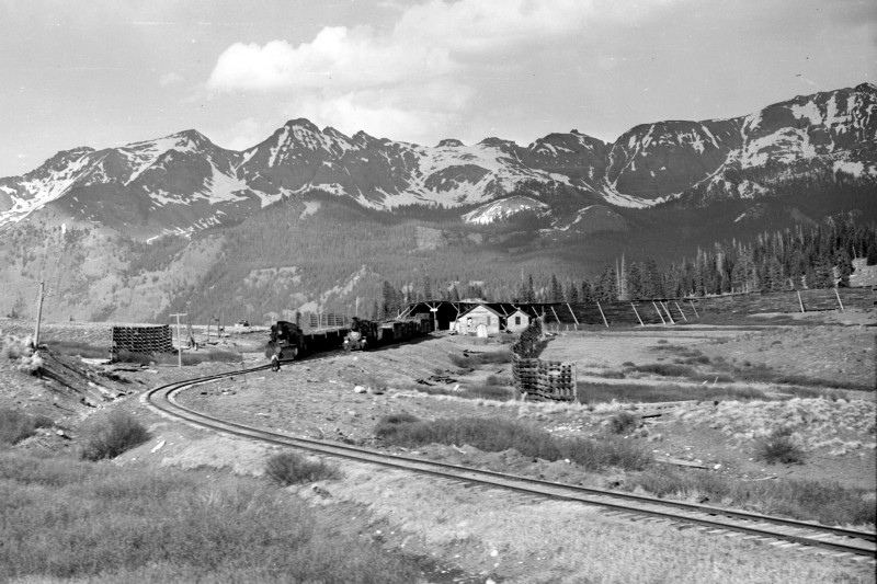 | Photo of the Week for Feb 23, 2014 - Mar 01, 2014 Two ex-DRGW K-27s (455 and 461) sit side-by-side at Lizard Head Pass on the RGS. Taken June, 5, 1951, by an unknown photographer. Negative from Nathan Zachman collection. Photograph by: Photographer unknown, Nathan Zachman Collection Back to the Photo of the Week Index... | |
