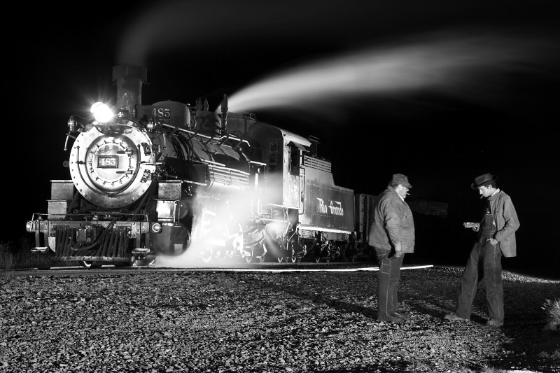 | Photo of the Week for Nov 13, 2011 - Nov 19, 2011 The crew of D&RGW 485 West checks the time atop Cumbres Pass. Of course it's not really 485 - it's 489, dressed for Pete Lerro's charter two months back. Photograph by: Nathan Holmes, photographer Back to the Photo of the Week Index... | |